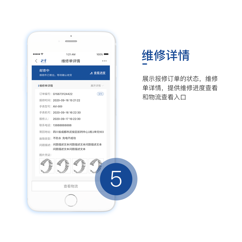用戶可線上填寫報修產品相關信息并提交審核,并可進行維修費用支付、實時查看產品維修進度