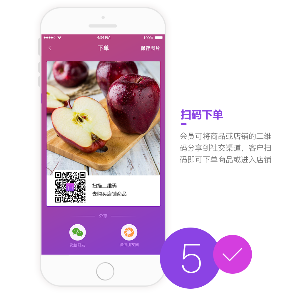 用戶可快速分享商品二維碼,好友識別二維碼后,無需注冊登錄即可直接購買,大大簡化操作門檻。