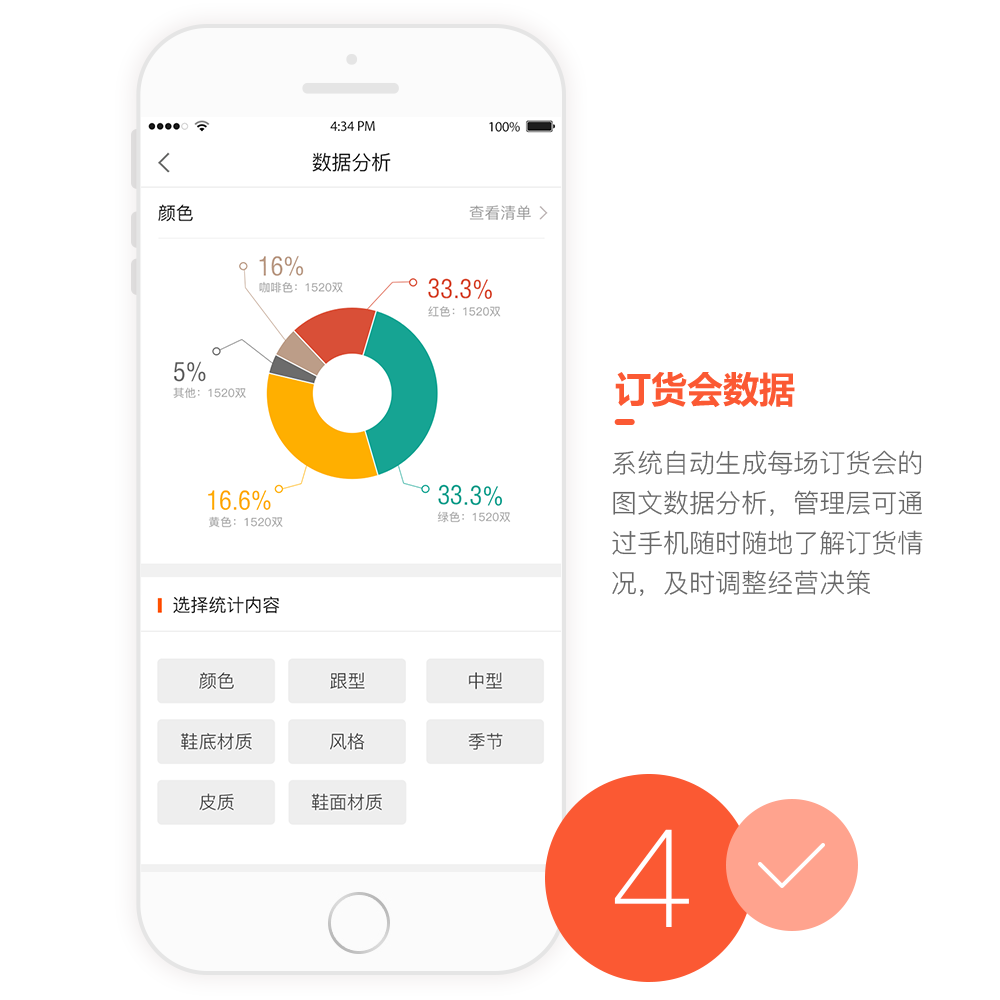 專注鞋類會銷的B2B訂購平臺, 經(jīng)銷商在新品訂貨會現(xiàn)場可直接通過APP掃碼查詢產(chǎn)品詳情與價格,完成現(xiàn)場采購與預訂,也可以通過平臺遠程下單補貨,有效的提高了經(jīng)銷商的采購效率和市場反應速度,加快了廠家的庫存流轉和資金回流速度,形成從訂單數(shù)據(jù)反饋,到按需生產(chǎn),再到新品改進的閉環(huán)流程,真正實現(xiàn)對經(jīng)銷商的數(shù)據(jù)化管理和以市場需求為導向的經(jīng)營模式
