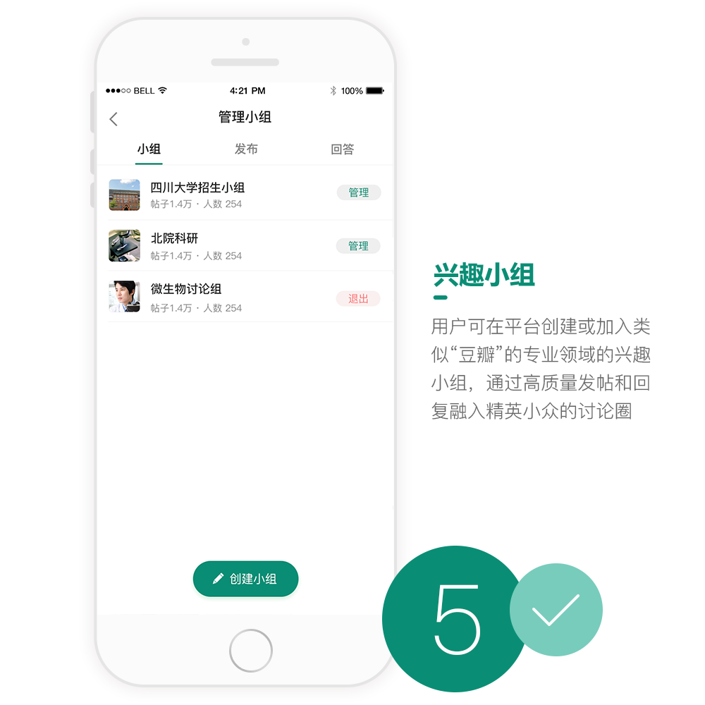 用戶可在平臺創(chuàng)建或加入類似“豆瓣”的專業(yè)領(lǐng)域的興趣小組,通過高質(zhì)量發(fā)帖和回復融入精英小眾的討論圈