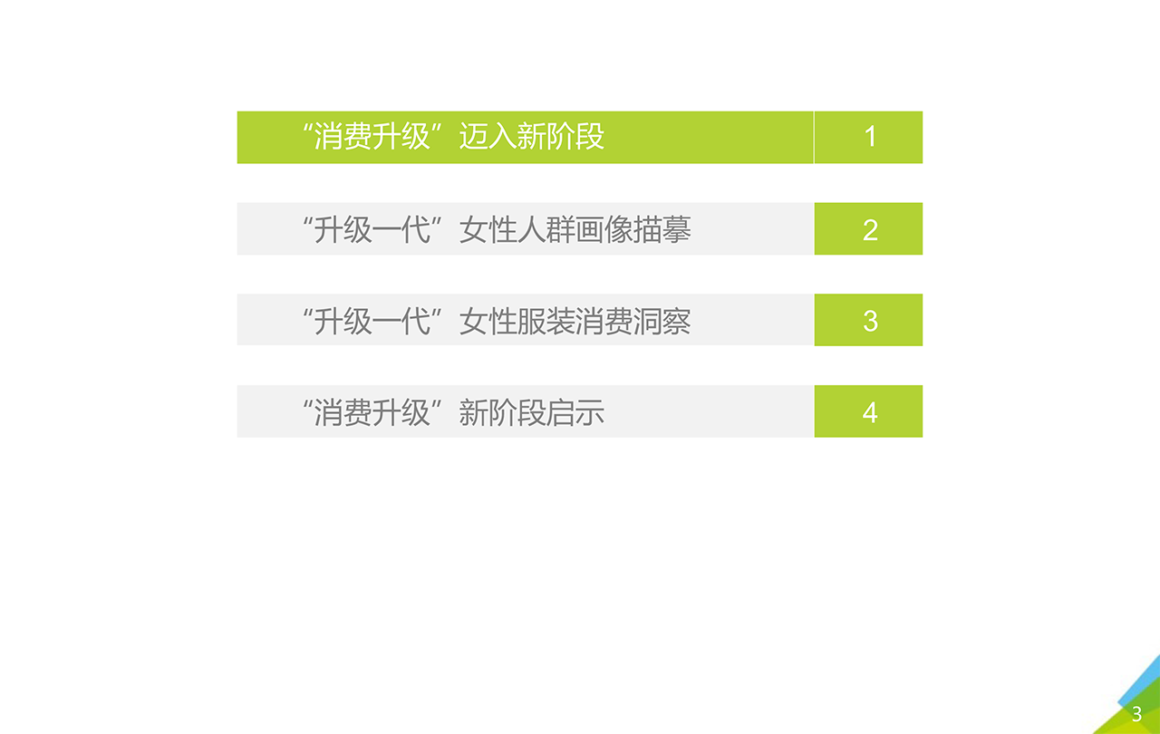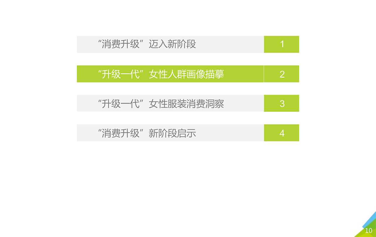 中國社會經(jīng)濟發(fā)展主要矛盾已經(jīng)轉為“人民日益增長的美好生活需要和不平衡不充分的發(fā)展之間的矛盾”,區(qū)域間的發(fā)展的不平衡,收入分配差距和貧富差別在較長一段時間還將持續(xù)存在,但人們對于美好生活的內涵和外延都在不斷拓展消費結構在不斷改變和升級。“消費升級”背景下成長起來的“升級一代”女性,雖然背景多元化,但消費觀念都呈現(xiàn)出重性價比、審美化與個性化并存的趨勢?!皩徝郎?”將是消費升級的下一階段,重點在服裝領域來看,未來也在產(chǎn)業(yè)鏈上存在不一樣的機會。