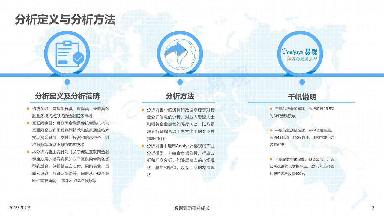 報(bào)告下載2019年9月23日,發(fā)布了《中國金融行業(yè)數(shù)字化發(fā)展專題分析2019》的分析報(bào)告。中國金融行業(yè)數(shù)字化發(fā)展專題分析內(nèi)容包含互聯(lián)網(wǎng)金融各類型如第三方支付、網(wǎng)絡(luò)借貸、互聯(lián)網(wǎng)理財(cái)、互聯(lián)網(wǎng)保險(xiǎn)等,同時(shí)從小微企業(yè)剛性需求角度,也納入了財(cái)稅服務(wù)等。分析從金融行業(yè)數(shù)字化發(fā)展綜合概述、細(xì)分方向分析、典型案例解讀和發(fā)展趨勢(shì)預(yù)測(cè)四個(gè)角度展開,清晰解讀金融行業(yè)數(shù)字化發(fā)展。